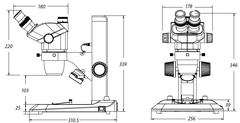 1:6.7 objective with 0.67x to 4.5x magnifications. Field of view from