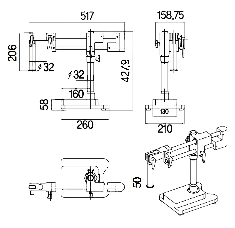 Stand-mounted stereo microscopes