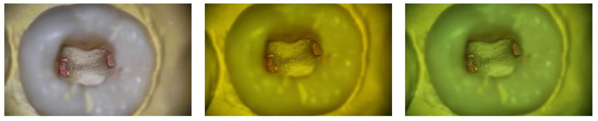 Without filter – Yellow filter – Green filter - Field of illumination: φ50mm