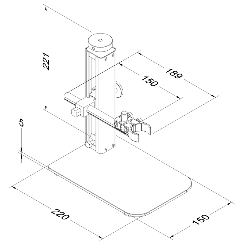 The Dino-Lite RK-10 is a precision tabletop stand designed for effortless focusing and quick positioning. Featuring fine-focus adjustment and a convenient quick-release mechanism, it provides smooth and stable control for most standard Dino-Lite models.