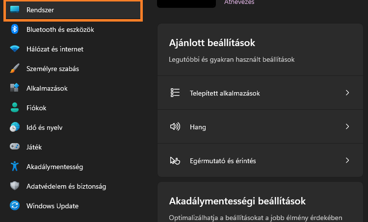 Itt keresse meg a bal oldali listában a Rendszer menüt.