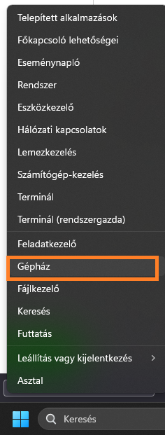 Először a gépház alkalmazást kell megnyitnunk. Ezt a legegyszerűbben Start