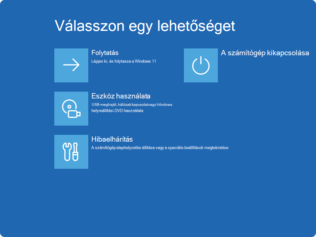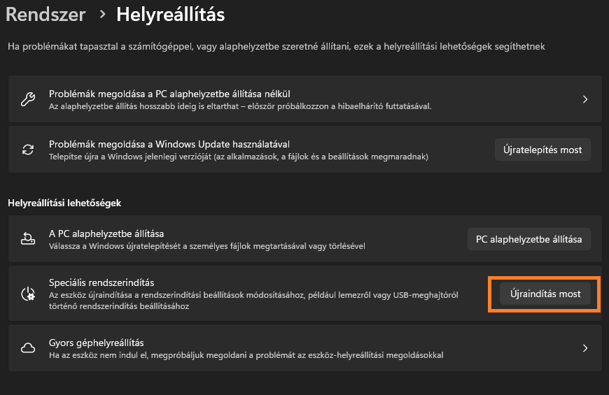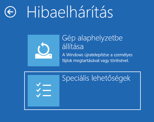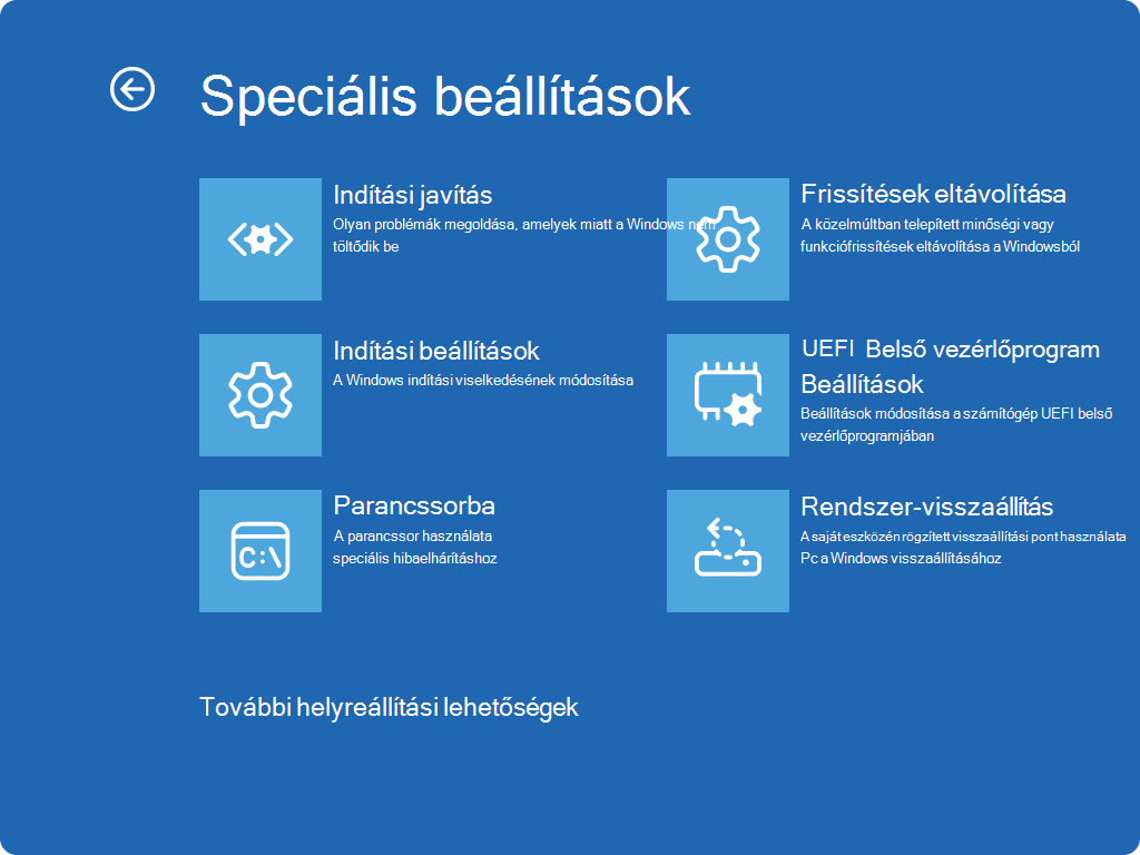 A Speciális lehetőségeken belül válassza ki alul a “További helyreállítási