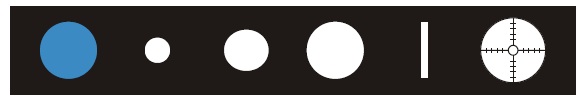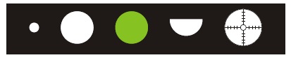 5 különböző apertúrával: kis spot, nagy spot, piros mentes, résfény, fixációs fény